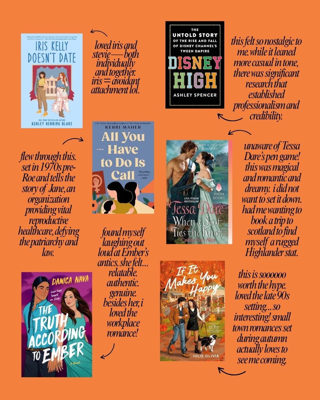 So I wrote about this book series in a separate newsletter, but I adored Iris’s book. I had been waiting for Iris’s book since book one. I knew I was going to like her, because in the first two books, she was this quirky side character with a lot of laugh-out-loud humor and heartfelt moments. Those characters always have a unique backstory. Iris’s character arc frustrated me only a little bit, but only because of her avoidant attachment style — but don’t let that stop you. Her character growth, along with Stevie’s (the other FMC), was impeccable. Yeah fine there was a third act breakup, but like… who cares? It made sense, I guess. I loved the theater setting, where Iris and Stevie were leads in a community-led production of Much Ado About Nothing. Overall, I loved the story, the characters, and the romance. What a wonderful conclusion to an impeccable romance book series.