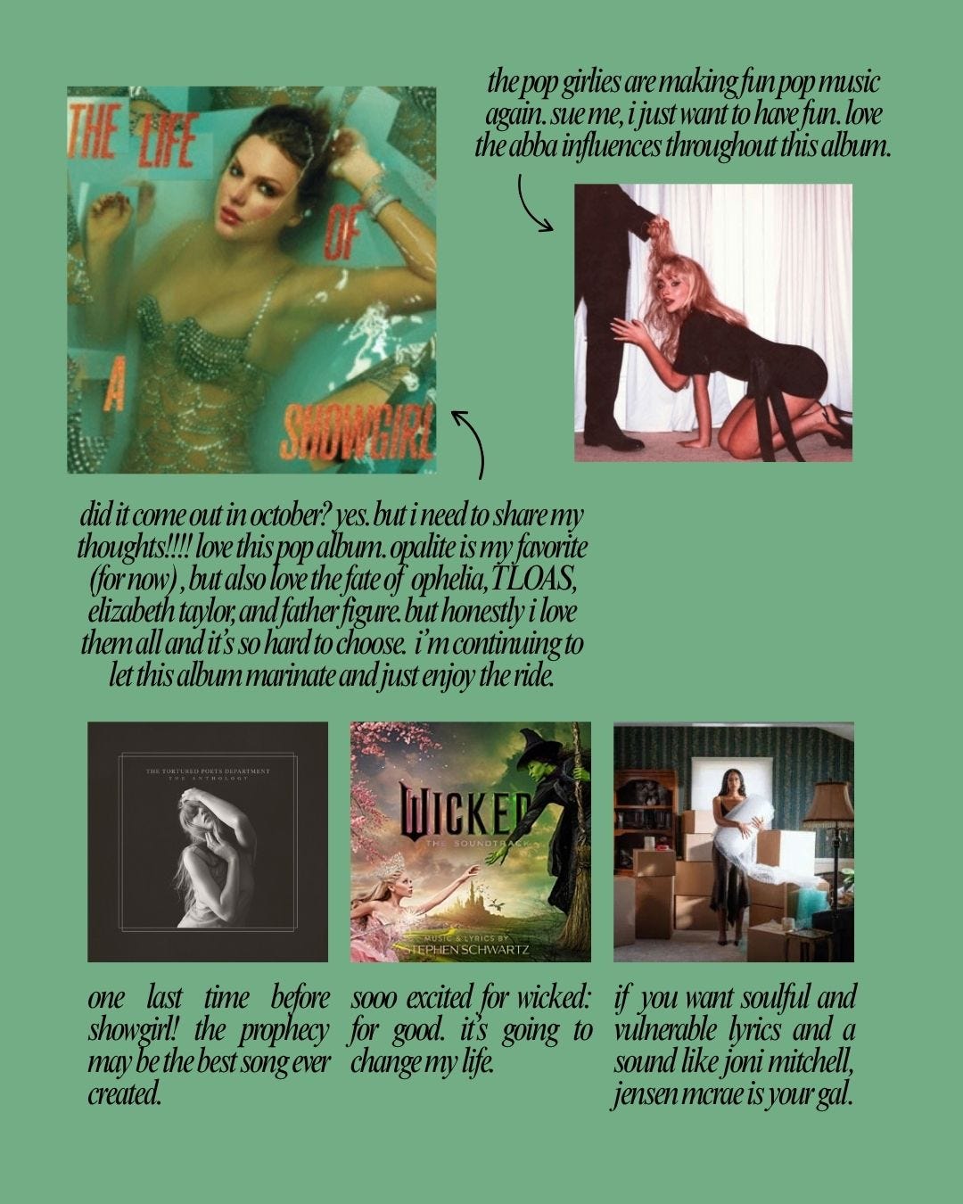 Besides what I read, I also watched a few great movies and shows! I’m so, so excited for fall TV. It’s going to be a good season for television. Stay tuned for my Dancing with the Stars thoughts — honestly, I may think about starting a separate DWTS newsletter because I have so many thoughts. Especially after this week’s episode. What I’m listening to? Besides the obvious, Taylor Swift’s new album The Life of a Showgirl (initial thoughts below!!!!), I visited some old favorite albums.